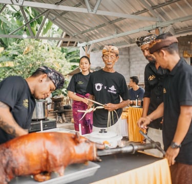 Experience our Suckling Pig Celebration, where you'll learn to prepare Babi Guling, Bali's beloved sucking pig dish. Delight in cultural insights and enjoy live performances as you savor this iconic culinary experience